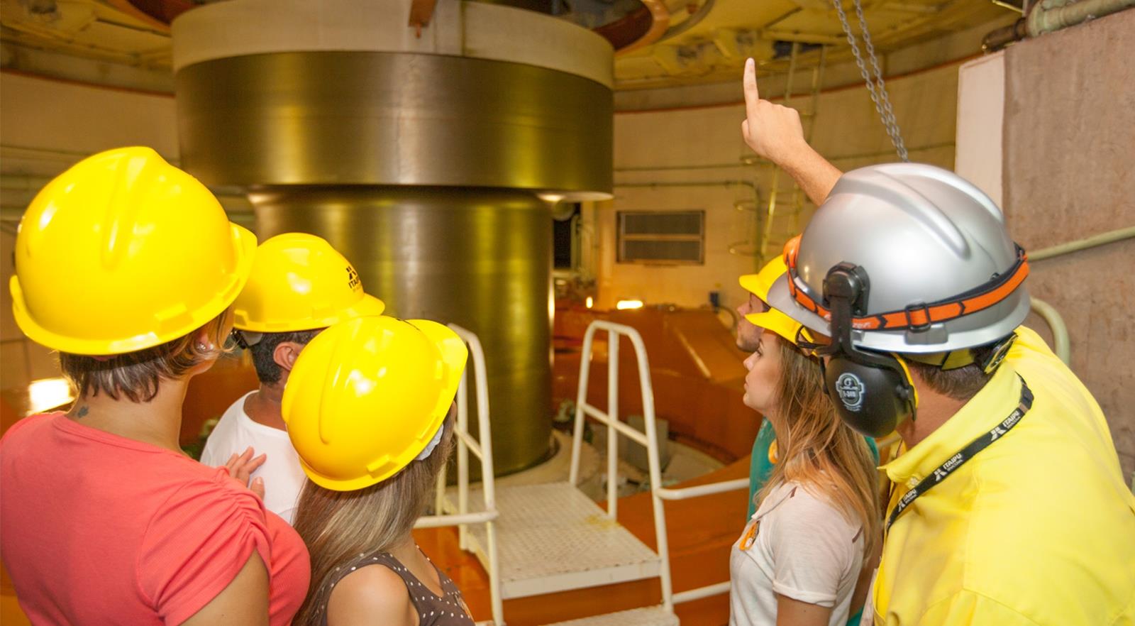 Um percurso no coração da usina que remonta à história, ao mesmo tempo em que surpreende pela modernidade de grandiosos equipamentos tecnológicos e evidencia a interligação entre os dois países responsáveis pela produção de energia. Os ruídos e a vibração incessante tornam o passeio inigualável e expressam a realidade da geração ininterrupta. Entrar em uma das próximas catedrais de concreto e observar a atividade do rotor de uma das unidades geradoras – somente ele pesa 1 milhão e 700 mil quilos, equivalente ao peso de mil carros de grande porte -, é se sentir na terra de gigantes.